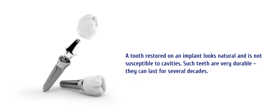Rebuilding missing teeth with dental implants is the most physiological method of tooth replacement in dentistry. With this approach, both the tooth root and crown are restored, offering strength and durability, while the shape and color are carefully matched to the remaining teeth. The restored tooth looks natural and is resistant to decay.